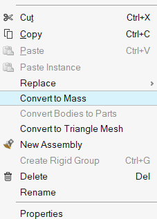 右键点击零件,然后从右键菜单中选择“转换为质量”。质量将需要被附加到剩余的结构上。