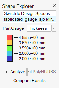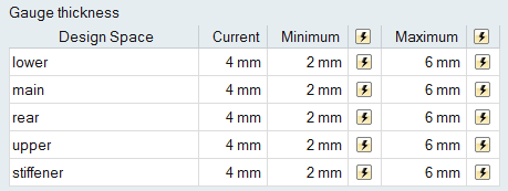 每个设计空间的当前测量厚度显示在“运行优化”窗口中,可以在此处或“属性编辑器”中定义。