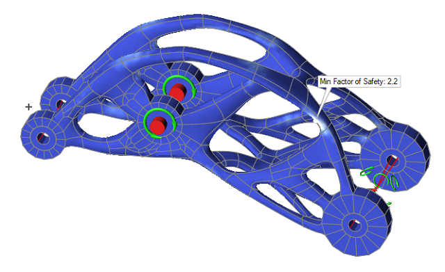 - 运行 PolyNURBS 优化时,目标是根据应力、频率或位移最小化质量。
