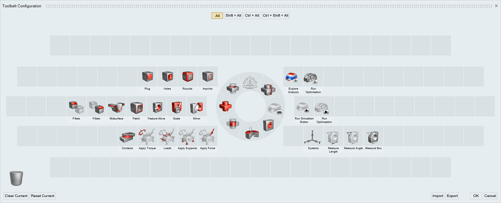 - 点击导出将工具带保存为可共享的 .xml 文件。点击导入加载之前保存的工具带。