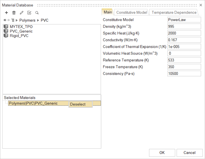Note: To deselect a material, right click on the selected material and click Deselect.
