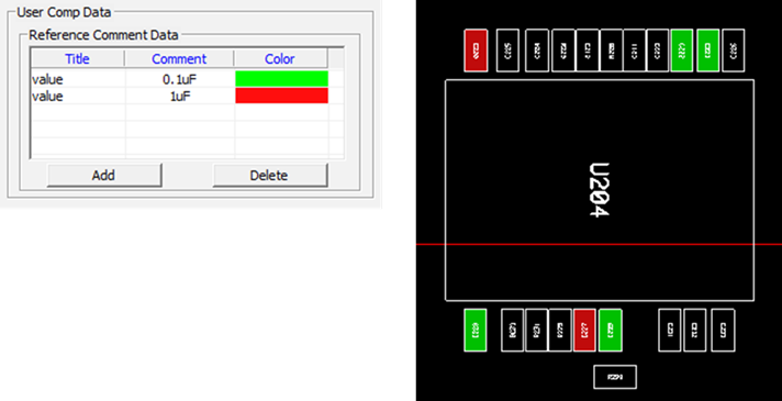 - Display X Mark: Display the X mark for the parts that exist only in the PCB data in the Display Value Properties. When Fill Color is activated, you can control the On/Off of the X mark in the list. • Display Exception: Exclude the component to display the X mark by using the string filter.