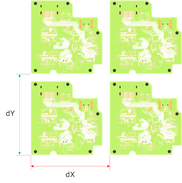 • dX, dY: Set the X and Y axis spacing of the copied sub board.