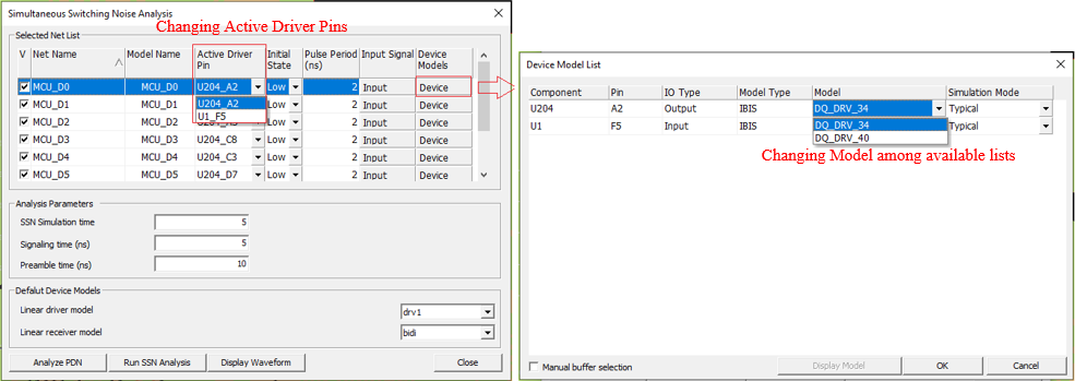 Analyze PDN: Open AC PDN Analysis dialog to analyze PDN impedance of driving
