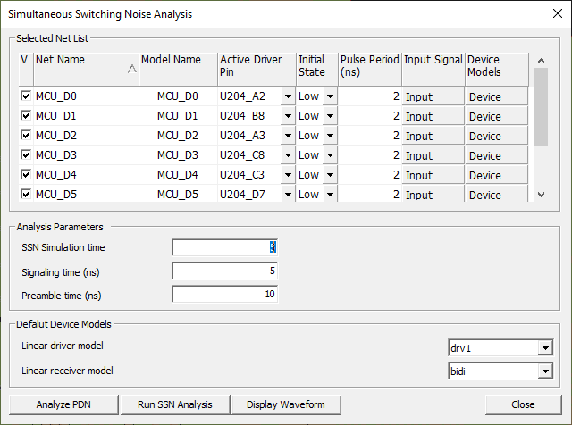 Use the Transient SSN Analysis menu to analyze interconnect network of bused nets with PDN effect of their power net
