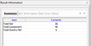 Summary, Net Information, and Net Error Data. In each tab, a selected net from