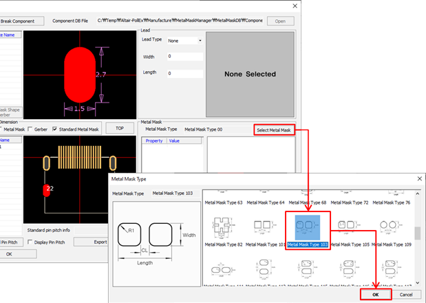 In the Metal Mask Type dialog, select the