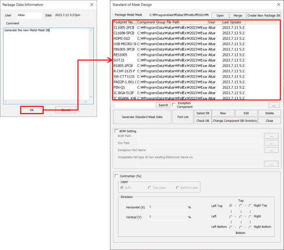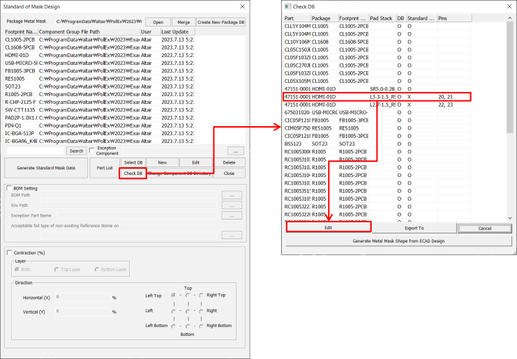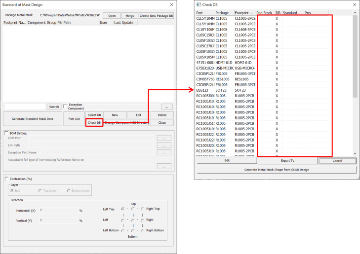 the components in the Package Metal Mask DB (*.mmdb).