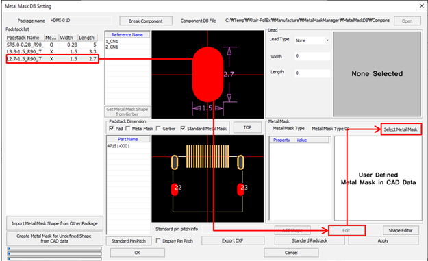 metal mask shape of the components placed in the CAD data in the Package