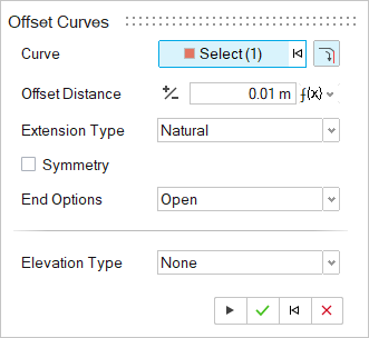 Reverse Direction.Create an offset curve on each side of the source curve In the guide panel, turn on Symmetry. Modify the shape In the guide panel, select one of the following End Options: - Open: Leave the offset curve open.