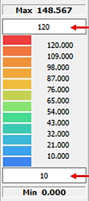 MaxテキストボックスとMinテキストボックスを使用して、それぞれにコンターの上限値と下限値を設定します。