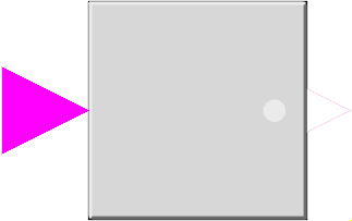 PartialBooleanSISO_small | Partial block with a BooleanInput and a BooleanOutput signal and a small block icon |