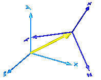In the following figure the animation of a FreeMotionScalarInit joint is shown. The light blue coordinate system is frame_a and the dark blue coordinate system is frame_b of the joint. (here: r_rel_a_1(start = 0.5), r_rel_a_2(start = 0), r_rel_a_3(start = 0.5), angle_1(start = 45o), angle_2(start = 45o), angle_3(start = 45o)).
