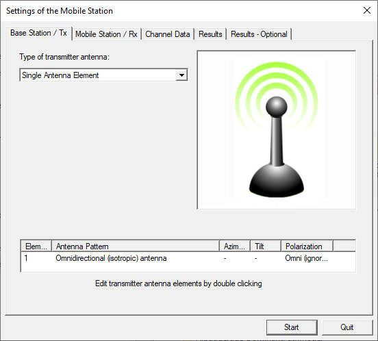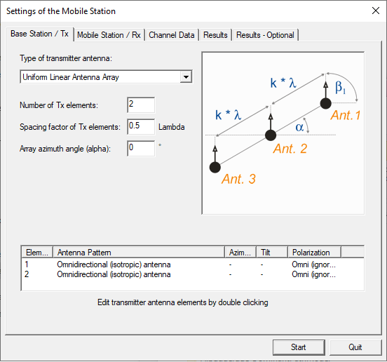 Here, the Base Station / Tx tab and the Mobile Station / Rx tab are where the MIMO antenna arrays can optionally be defined: