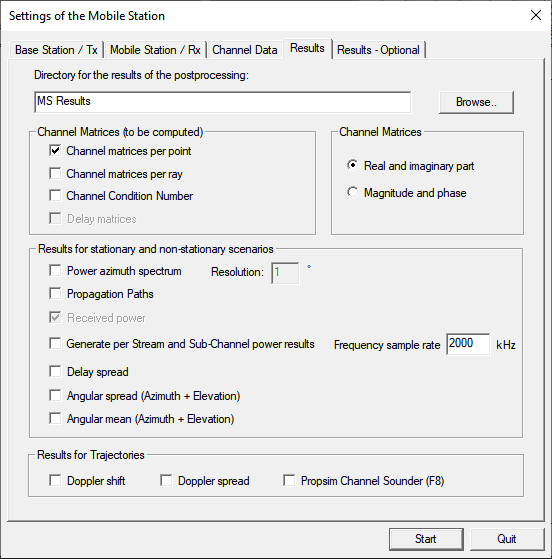 Figure 6. The Settings of the Mobile Station dialog, Results - Optional tab.