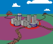 In macro-cellular prediction models, forward propagation including multiple diffractions over terrain and buildings is applied. Scattering and reflection from hills, mountains, and buildings can generally be neglected because the base station is located above the surrounding obstacles to cover a large area. Possible applications are, for example, broadcasting transmitters or base stations in very low populated areas. The predictions are based on the knowledge of topography, land usage and in few models additionally building height information.