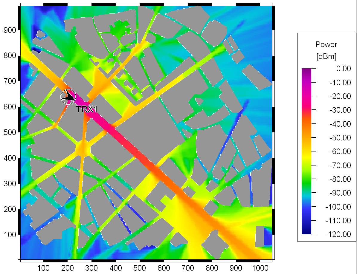Figure 4. Prediction of the received power with intelligent ray-tracing.
